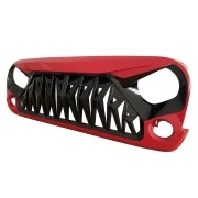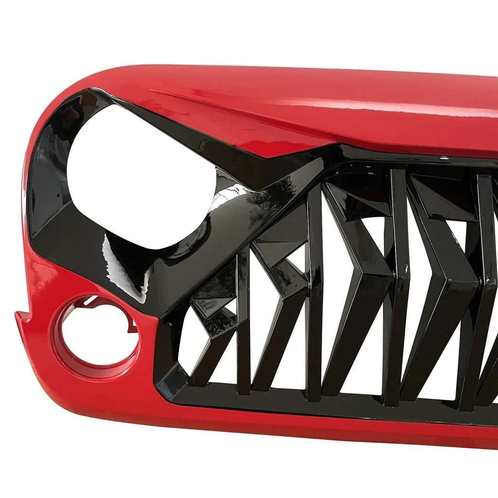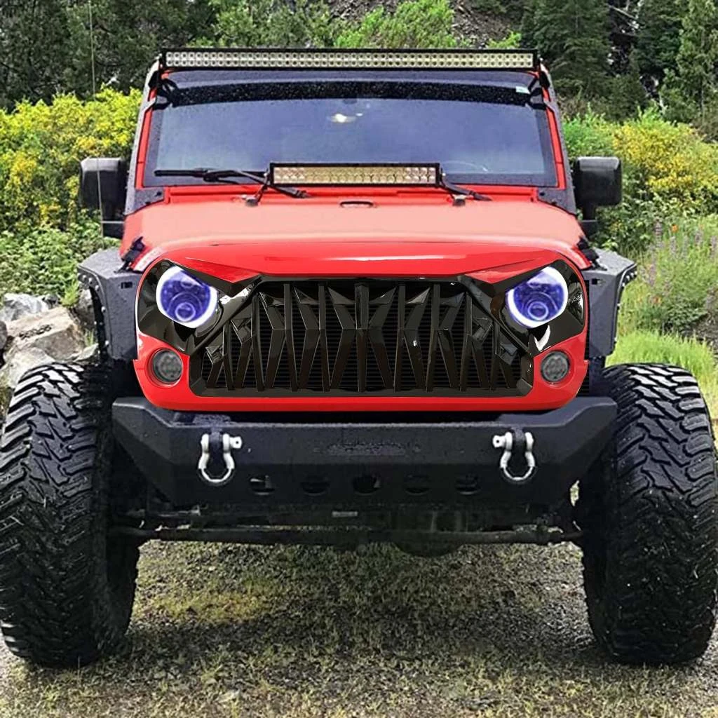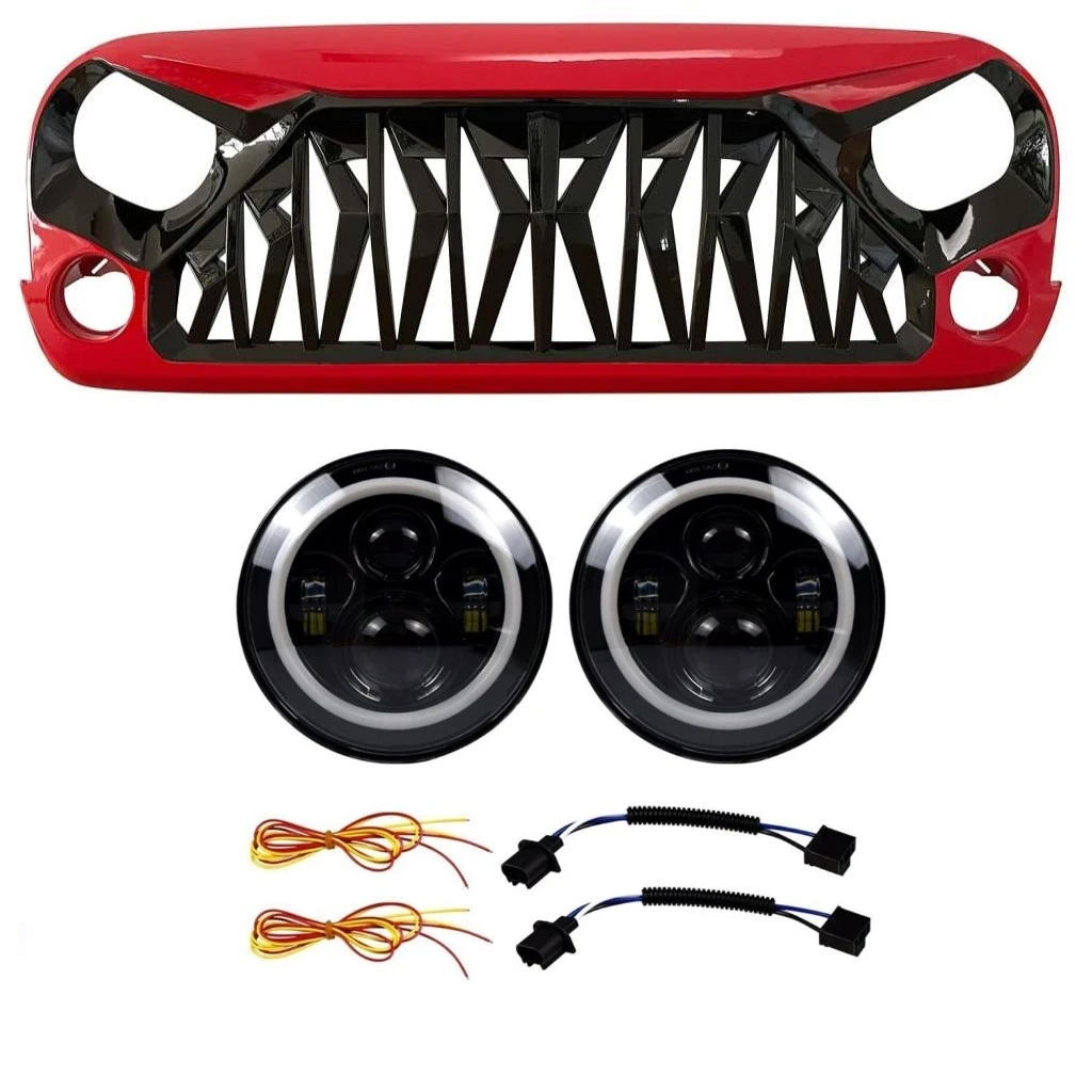 Full Red Shark Front Grille for Jeep Wrangler JK JKU 2007-2018 & Clearance 7 Inch Halo Headlights for Jeep Wrangler TJ JK JL 97-22 Combo