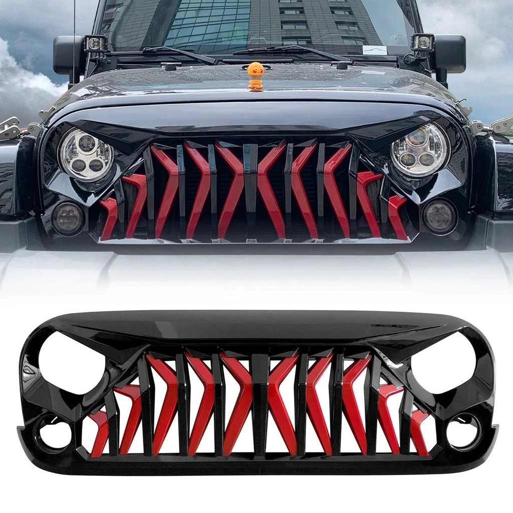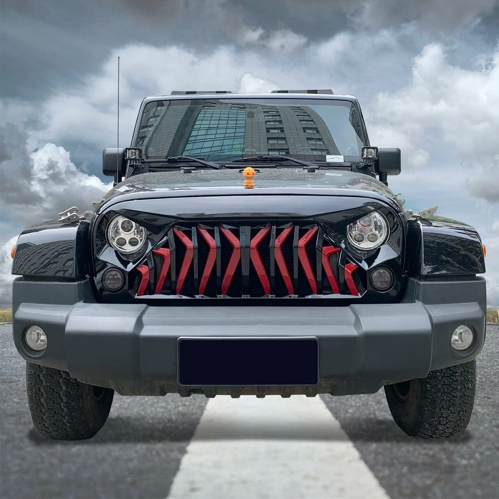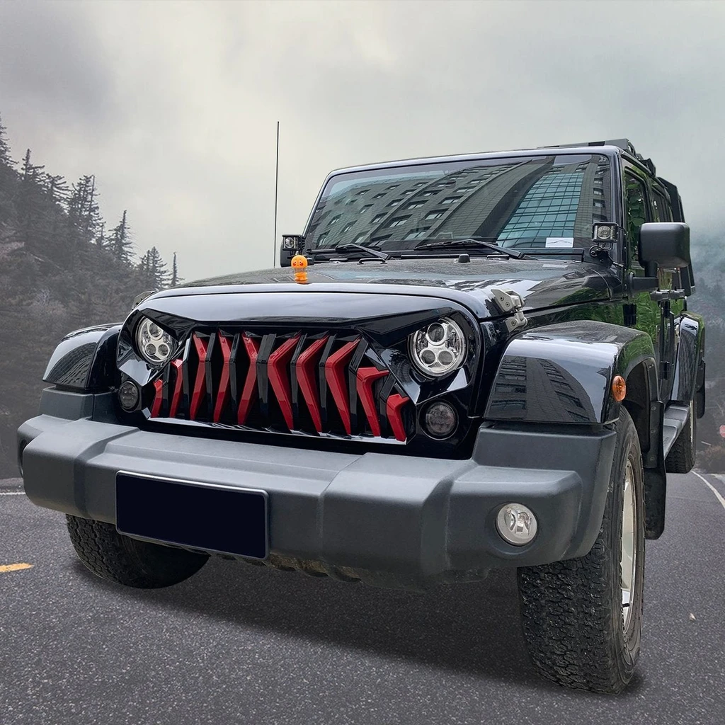 Shark Front Grille Grid Grill Guard For Jeep Wrangler JK JKU 2007-2018 - Bloody Black239.