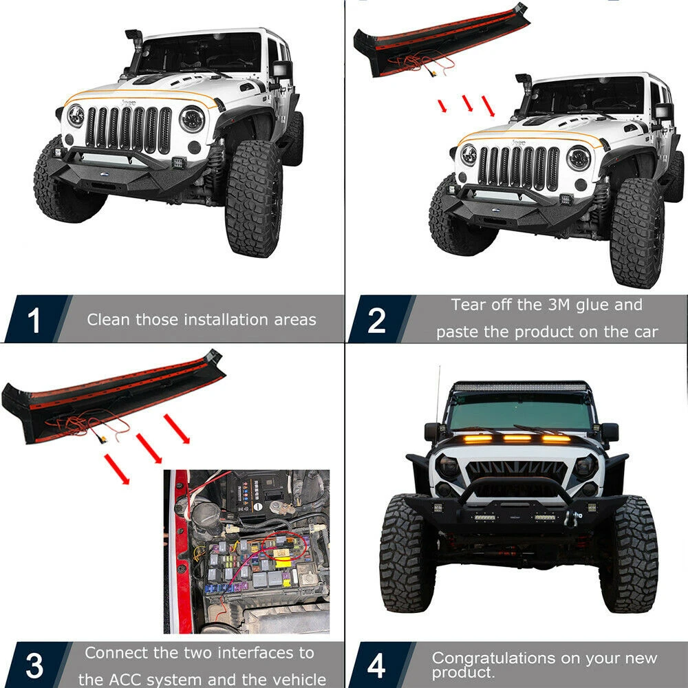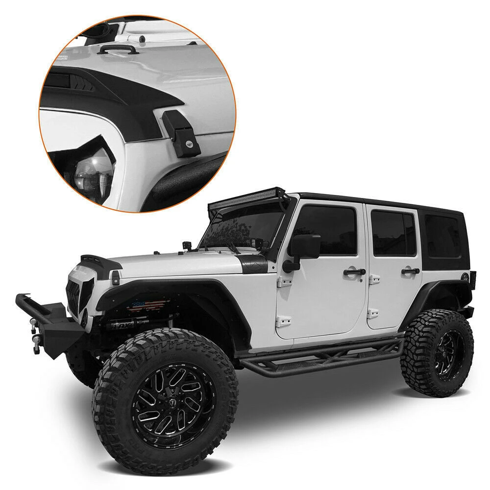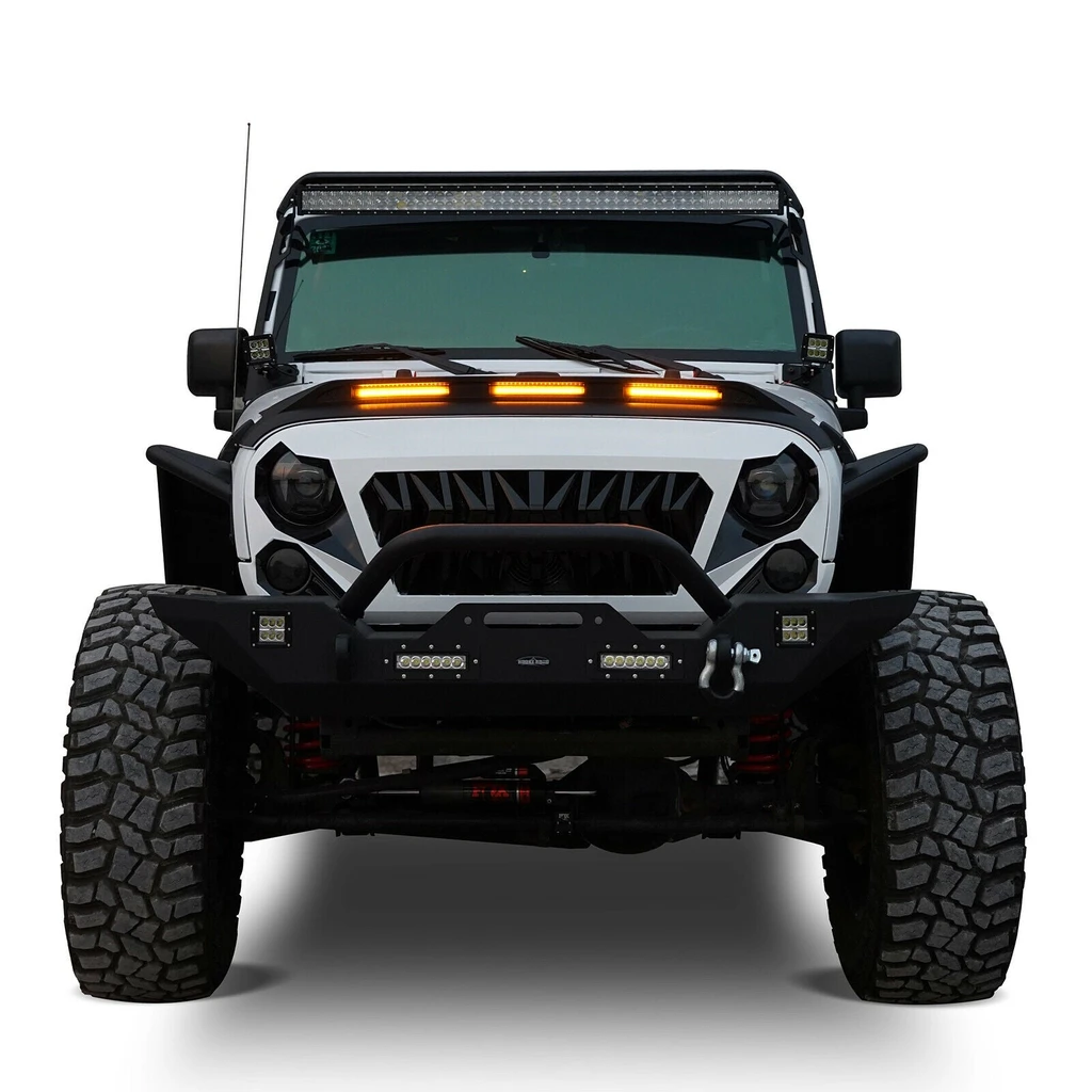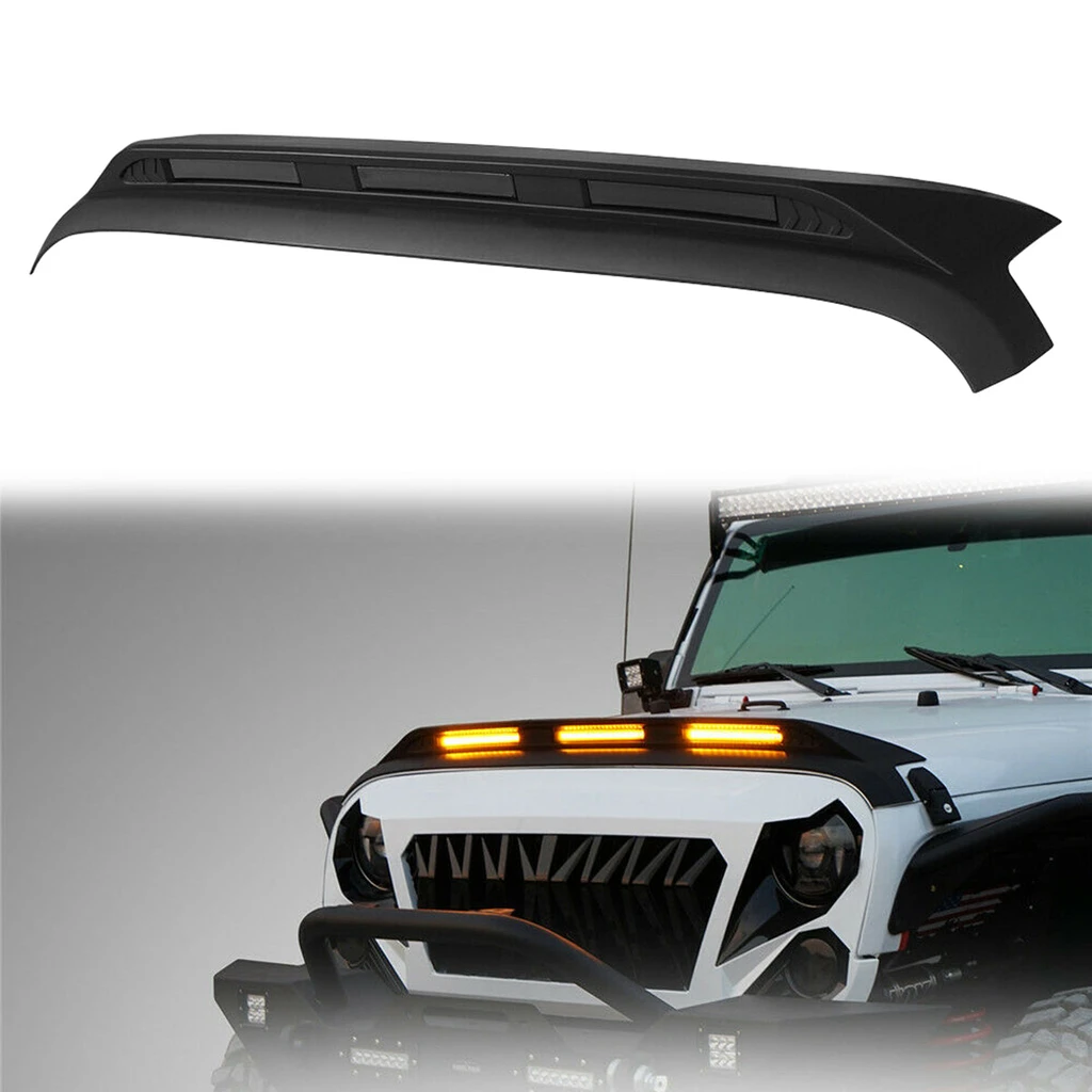 Hood Protector Stone Guard w- Amber Light for Jeep Wrangler JK 2007-2018
