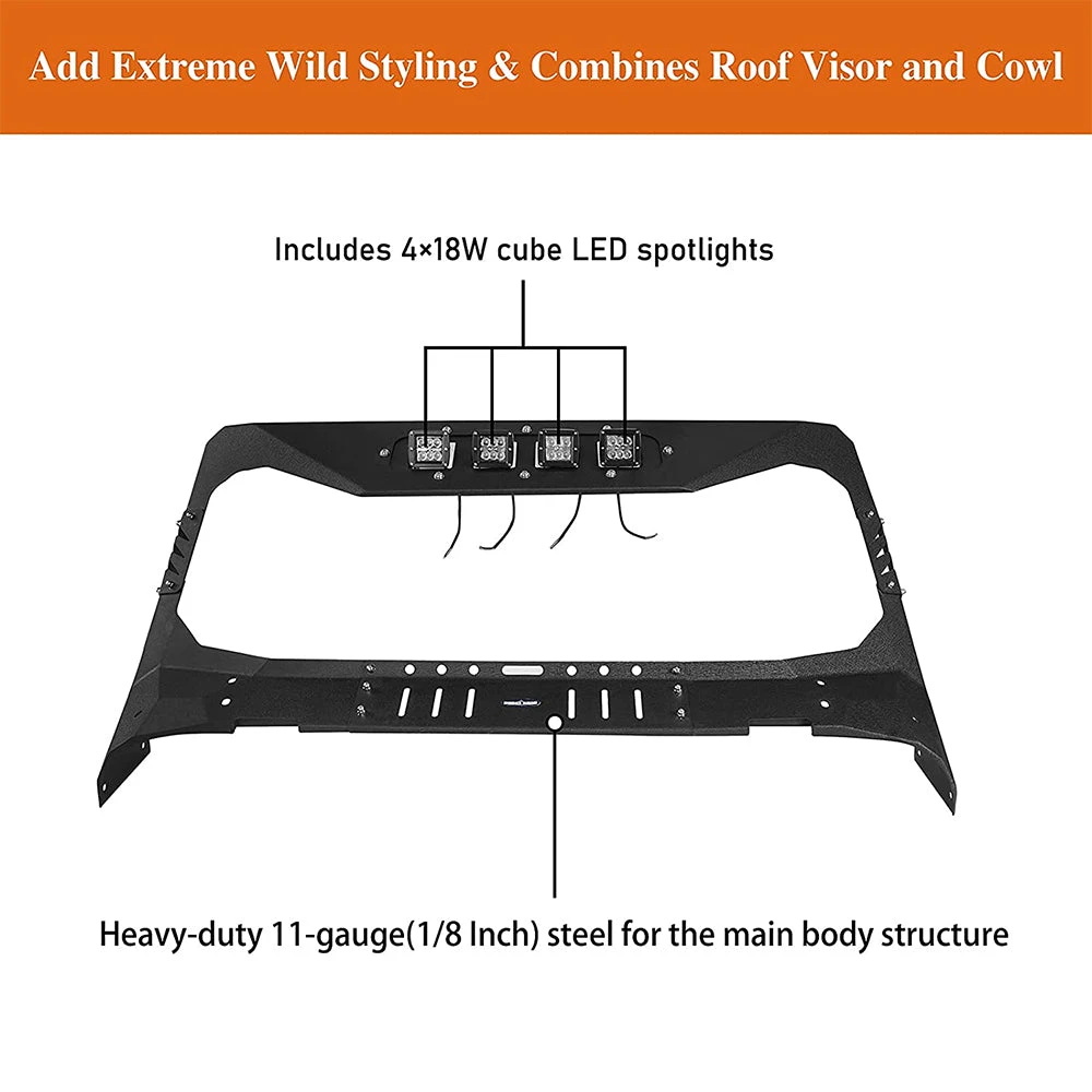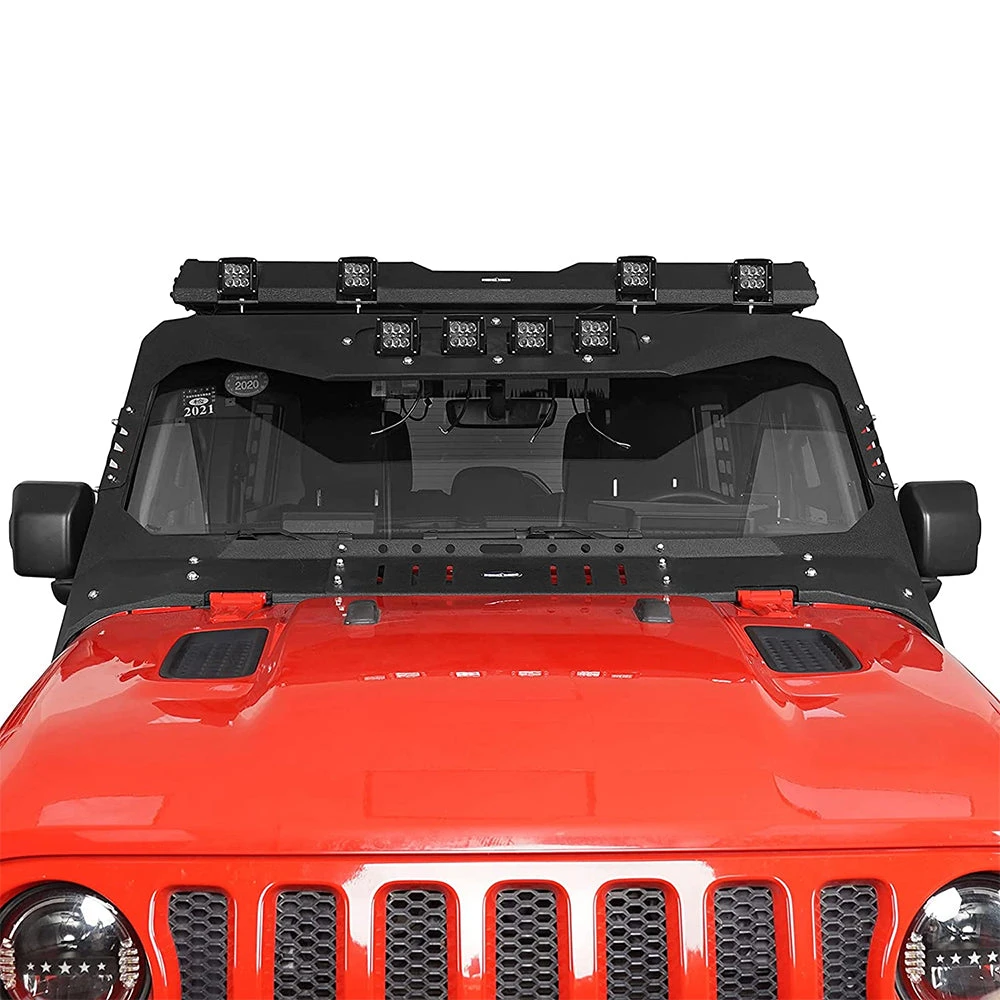 PRE-Windshield Frame Cover w- 4 LED Lights Insert Fit Jeep Wrangler JL 18-21& Jeep Gladiator