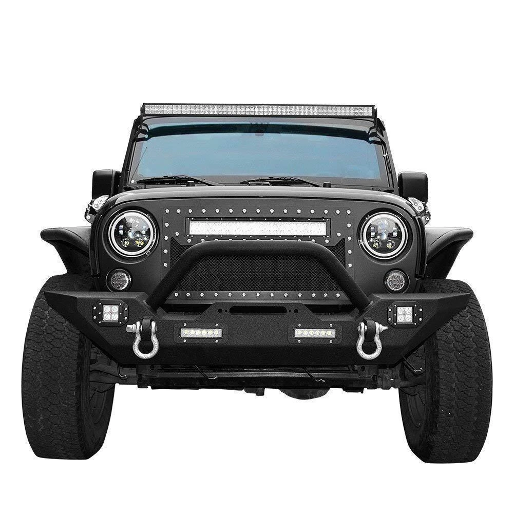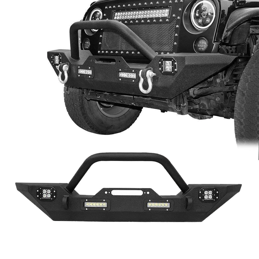 Rock Crawler Front Bumper w-All LED Lights fits Jeep Wrangler JK & Unlimited 2007-2018 2-4 Doors